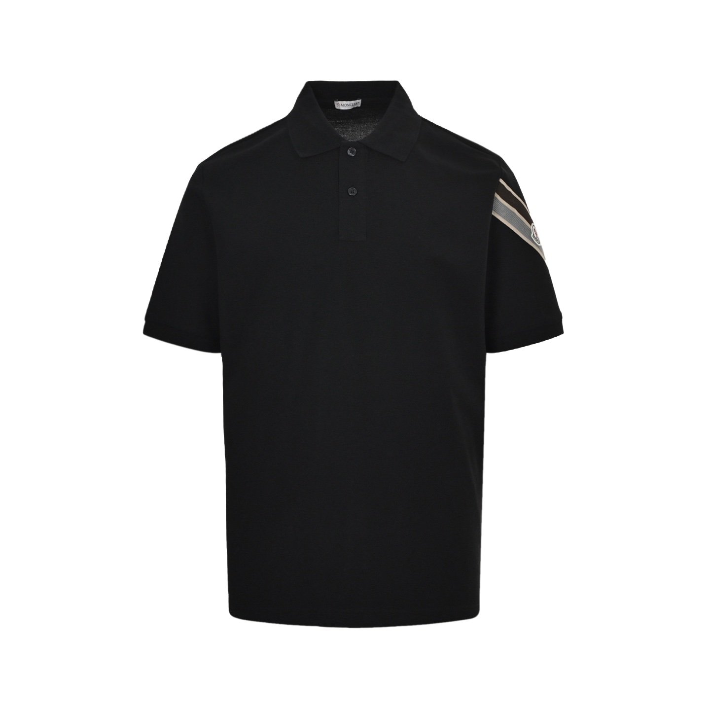 Moncler Tricolour Trimmed Cotton Piquet T-Shirt Black