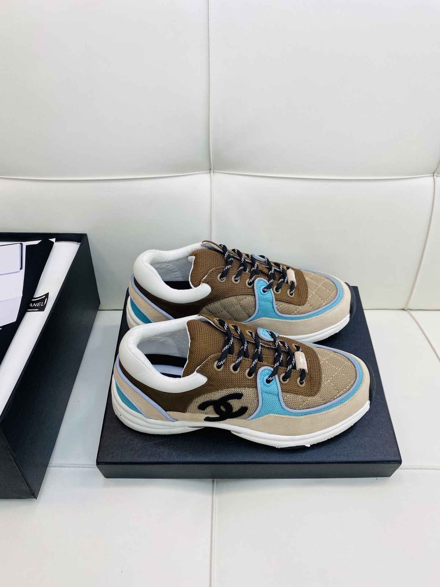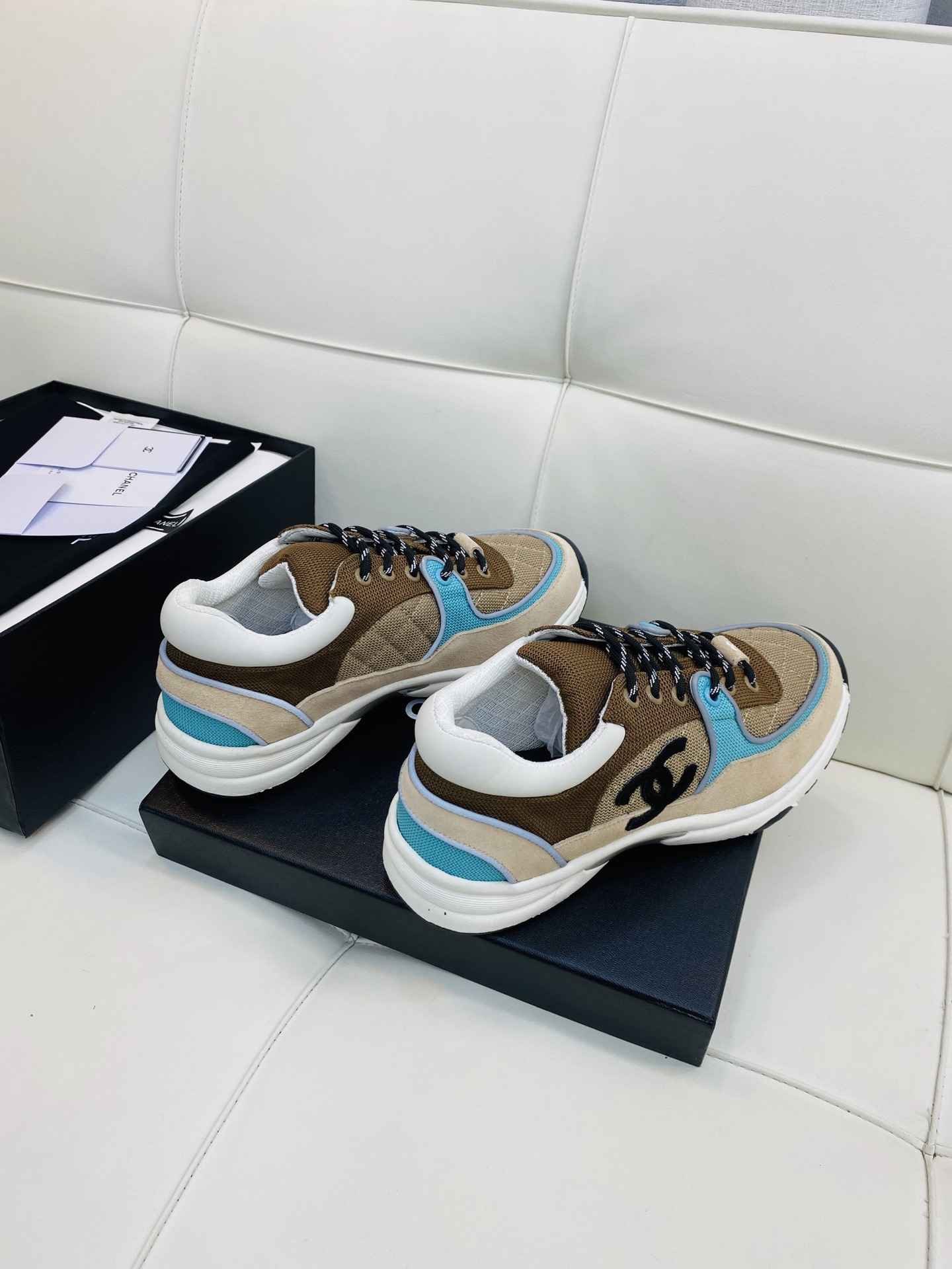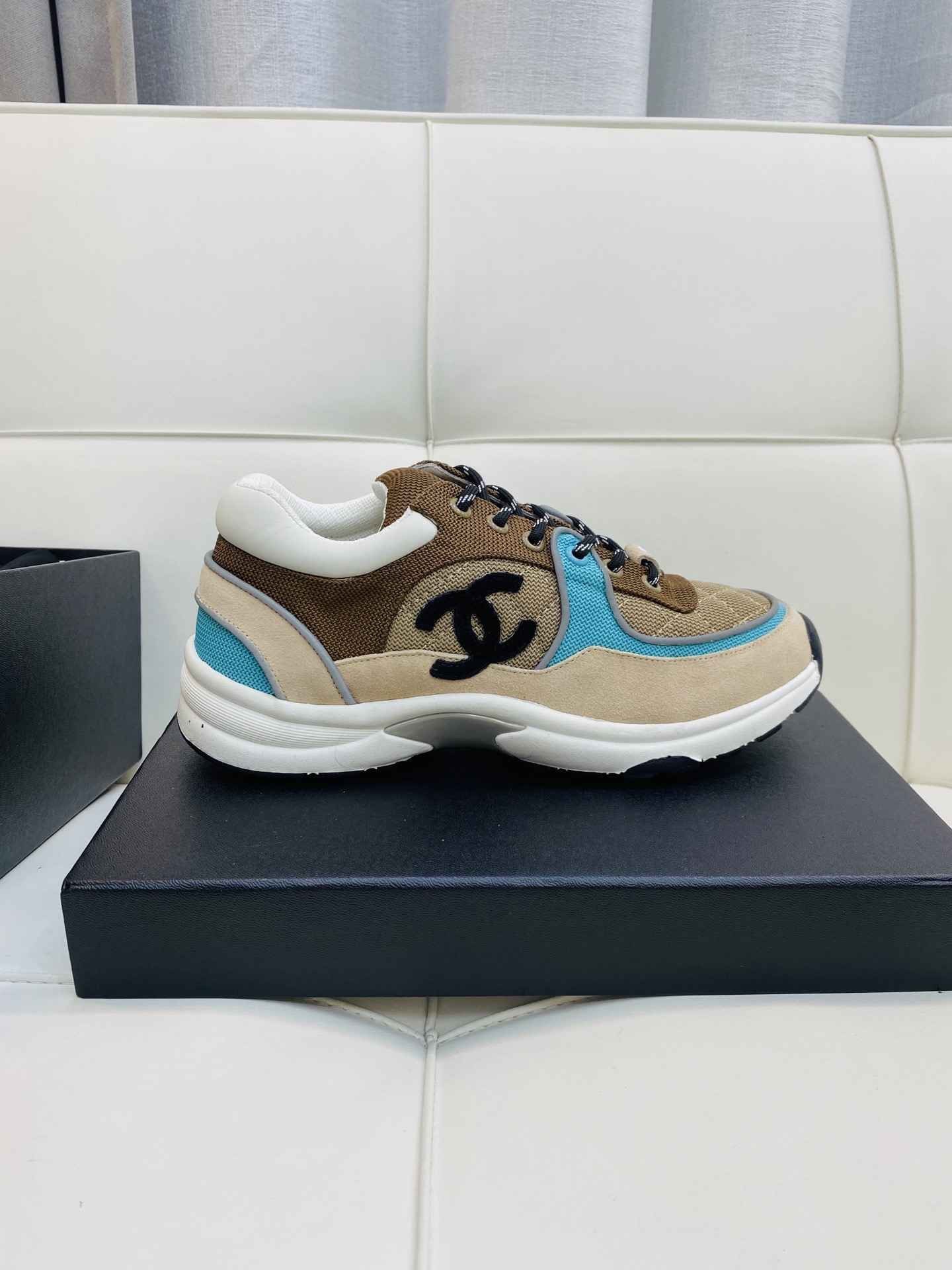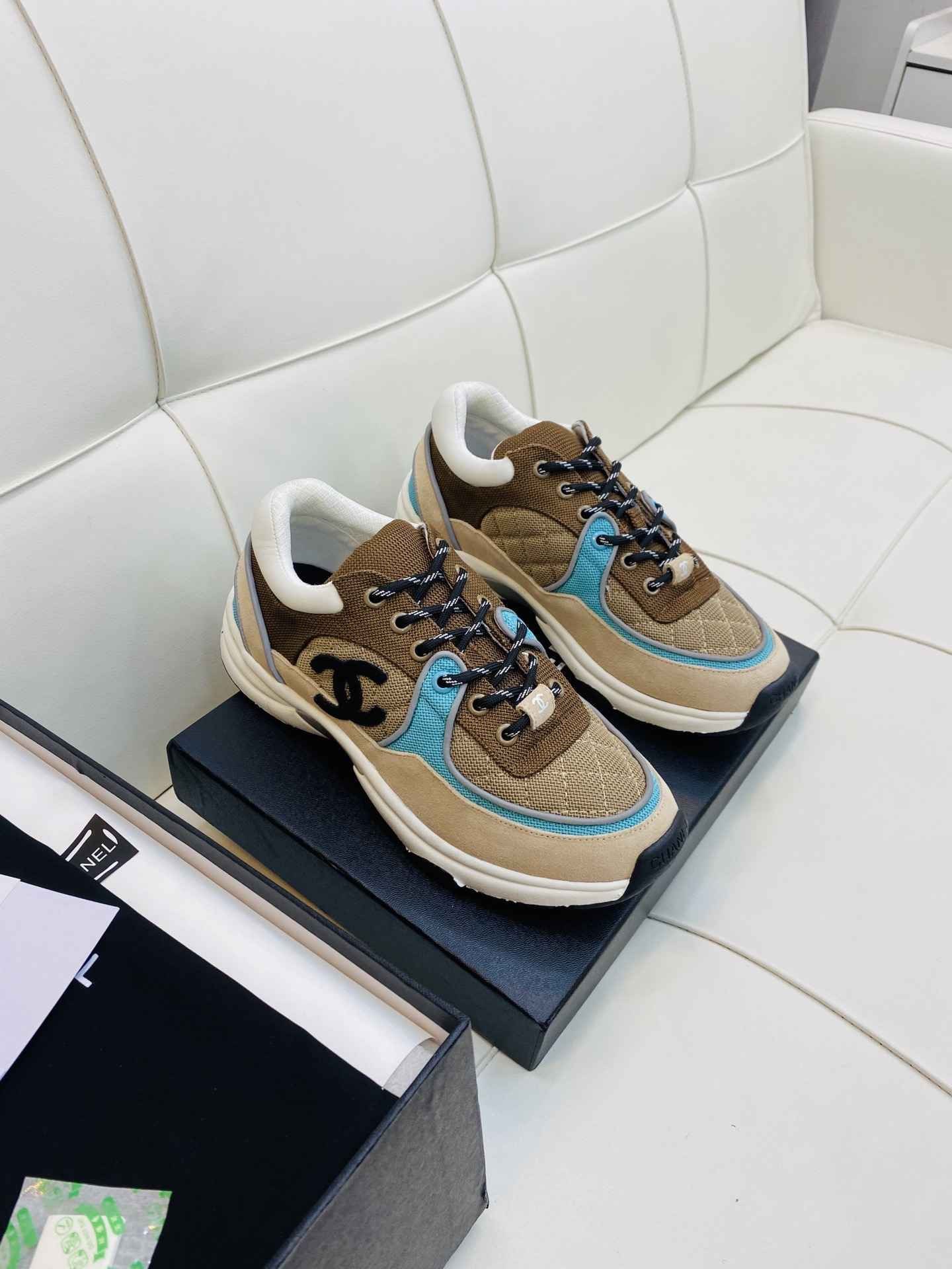 Chanel Low Top CC Trainer Beige Green