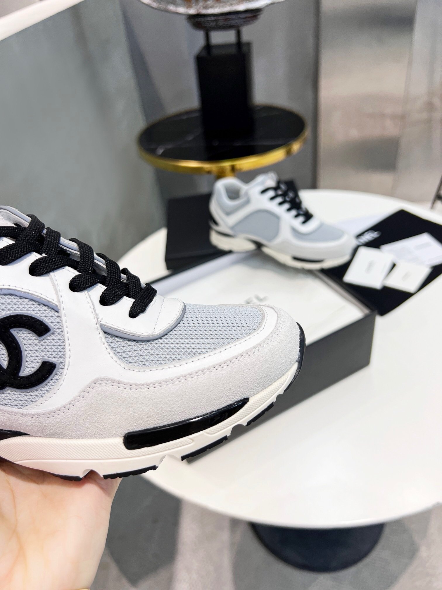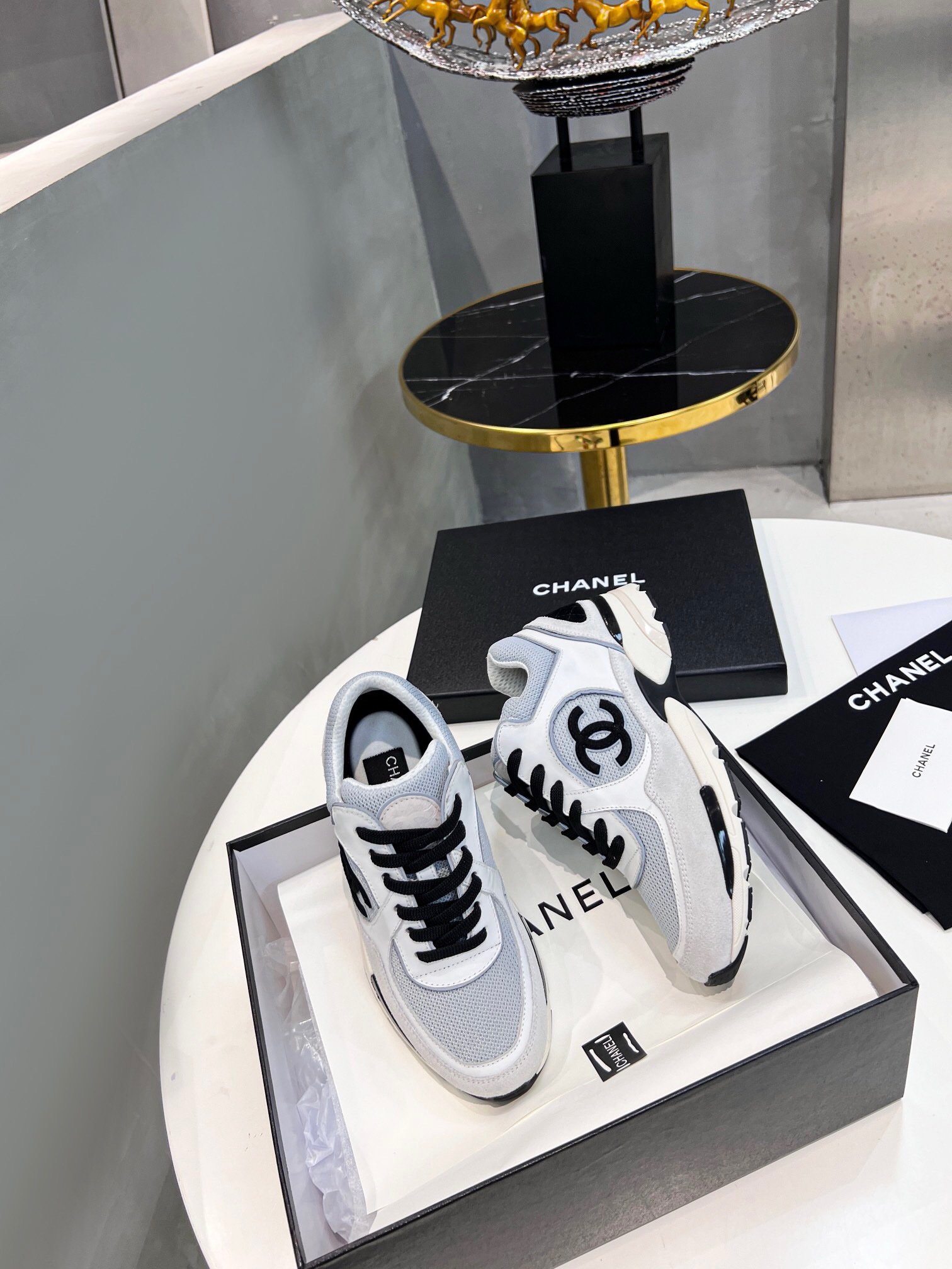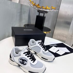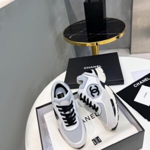 Chanel Low Top CC Trainer Black Logo White