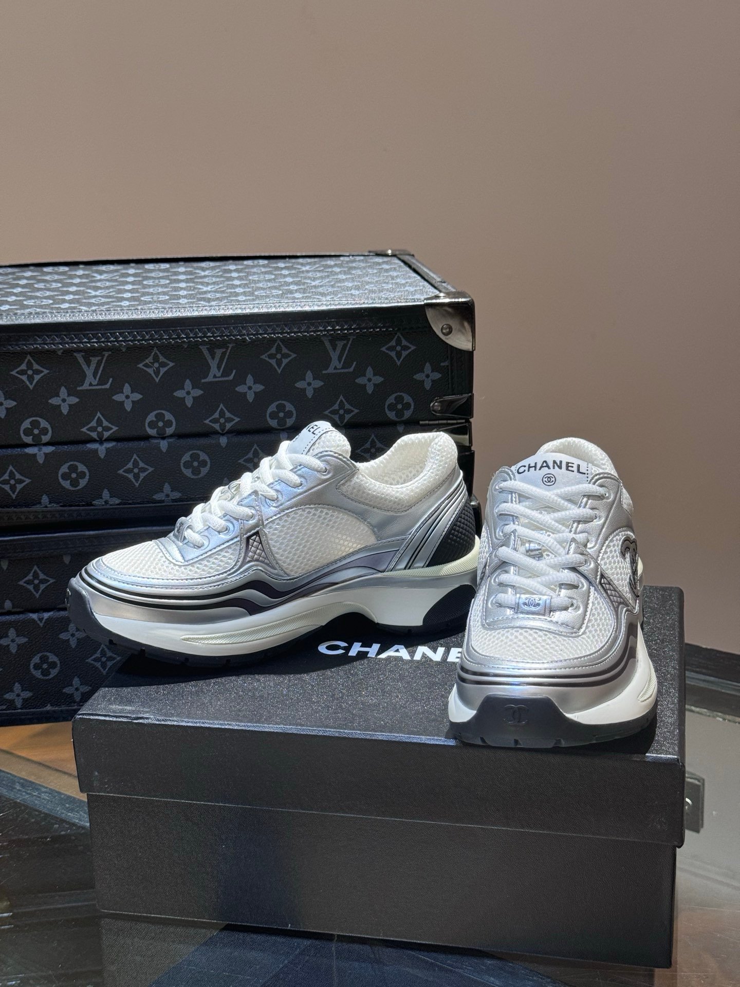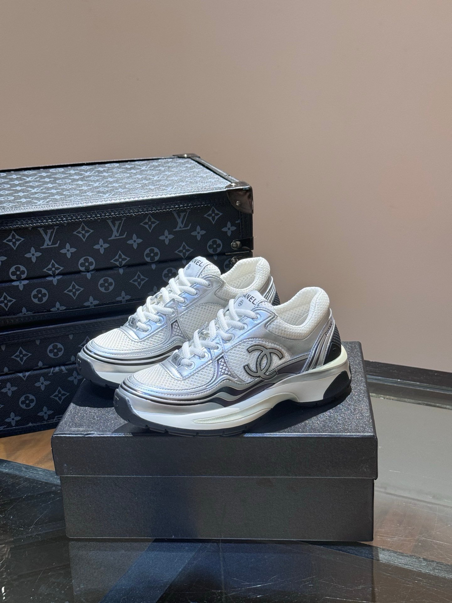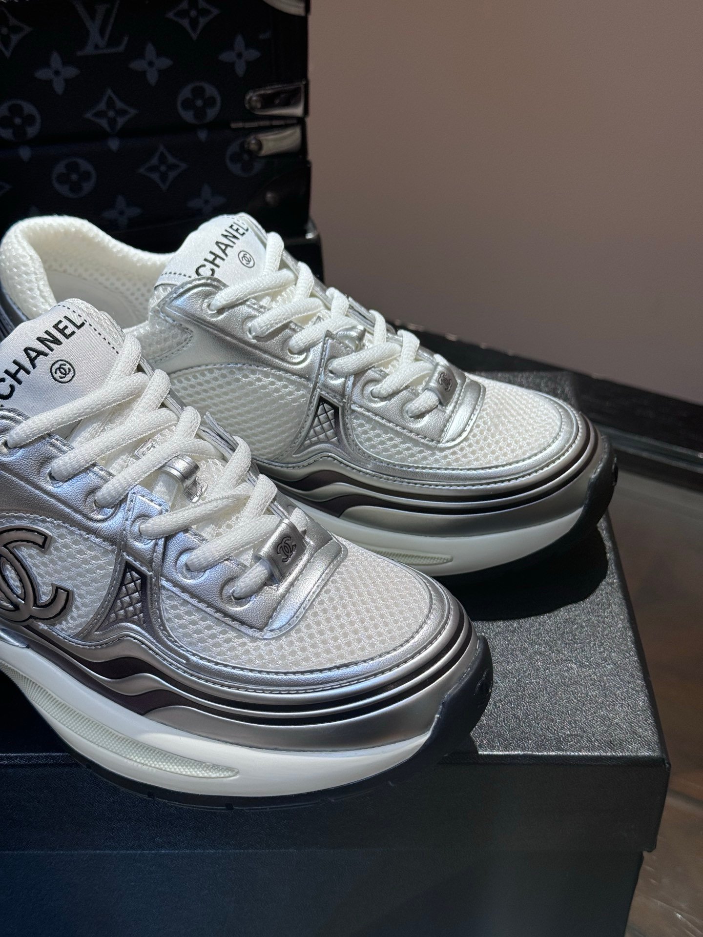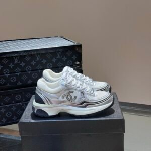 Chanel Low Top CC Trainer White Silver