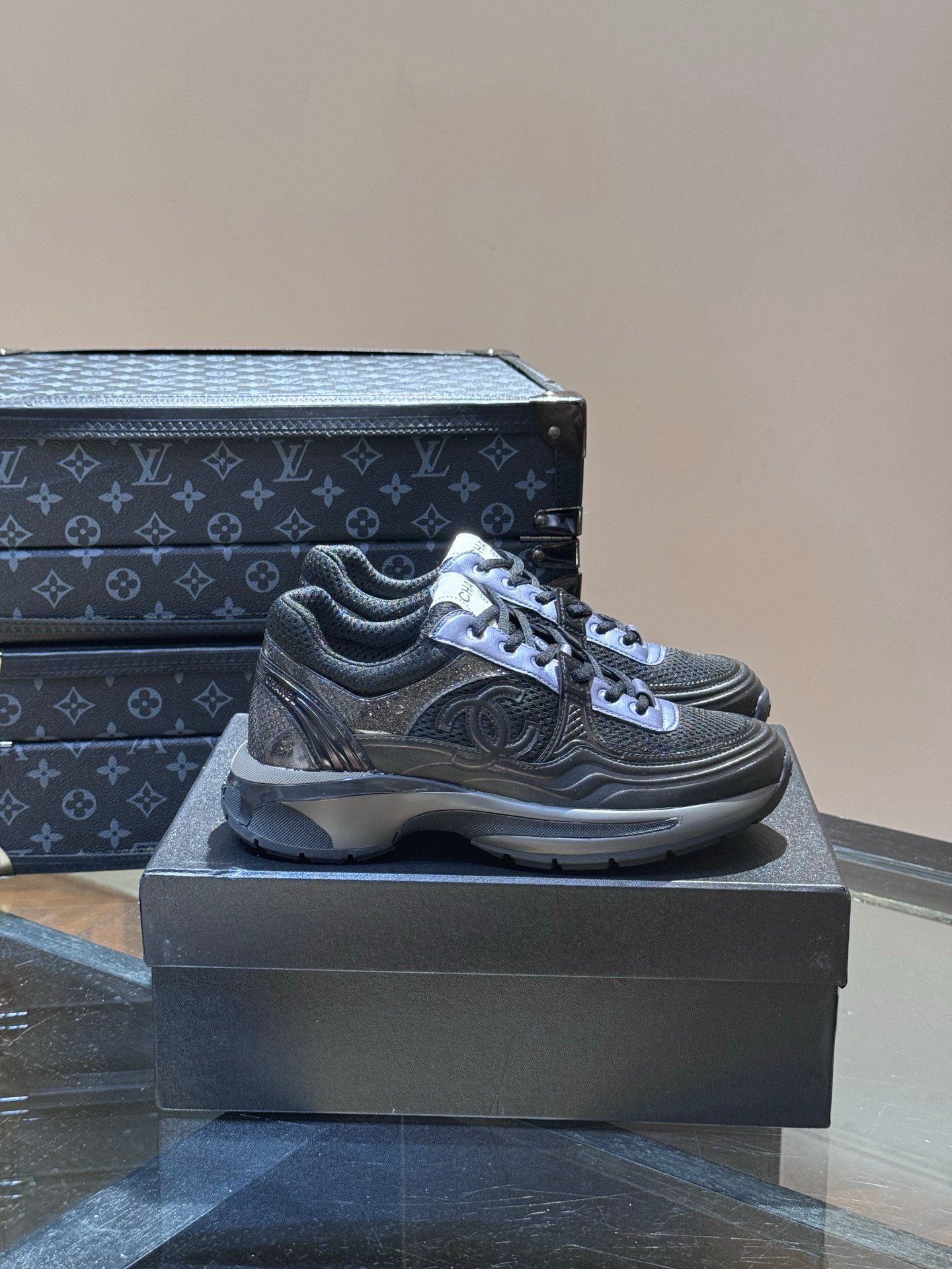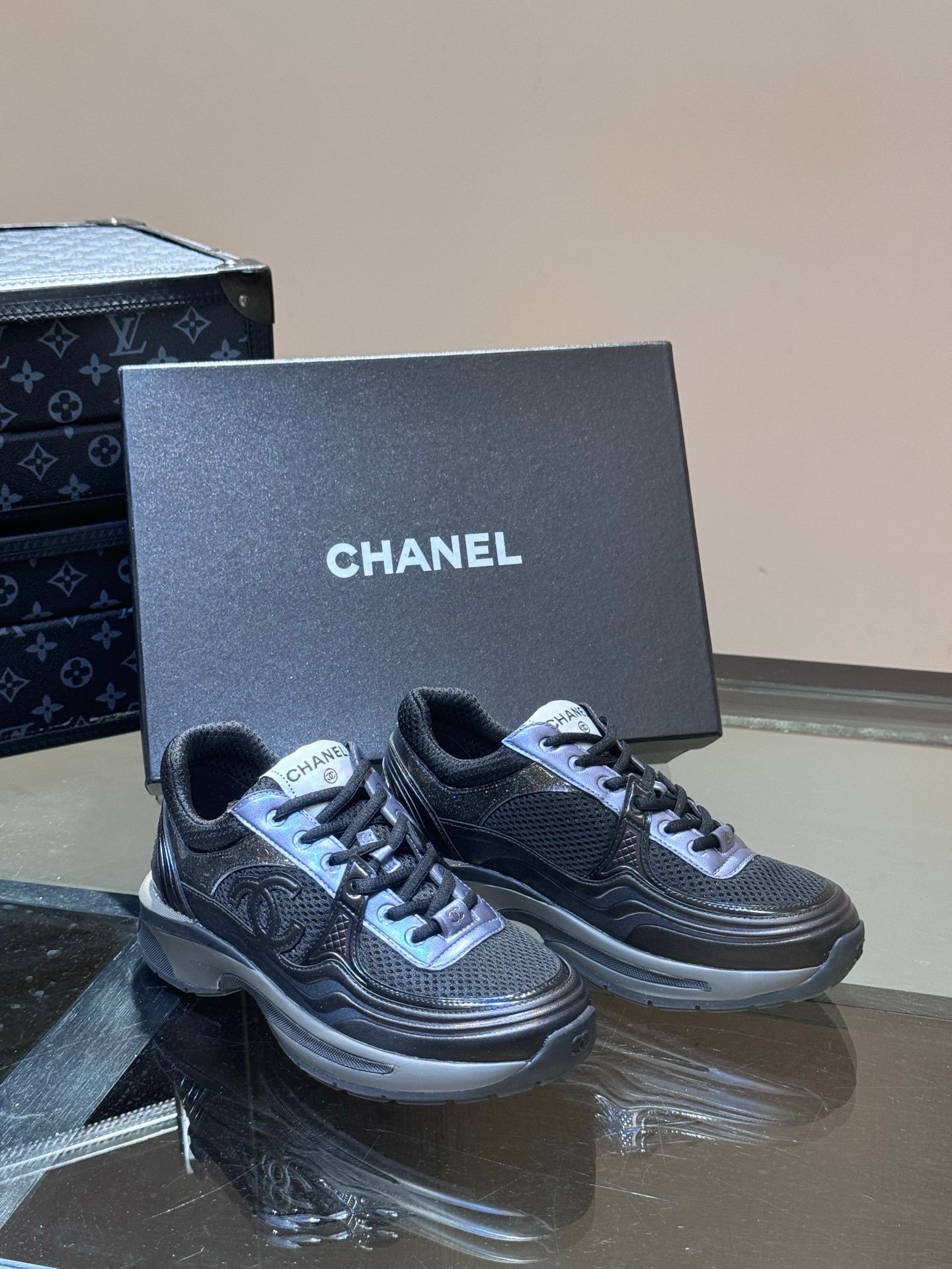 Chanel Low Top CC Trainer Black Blue