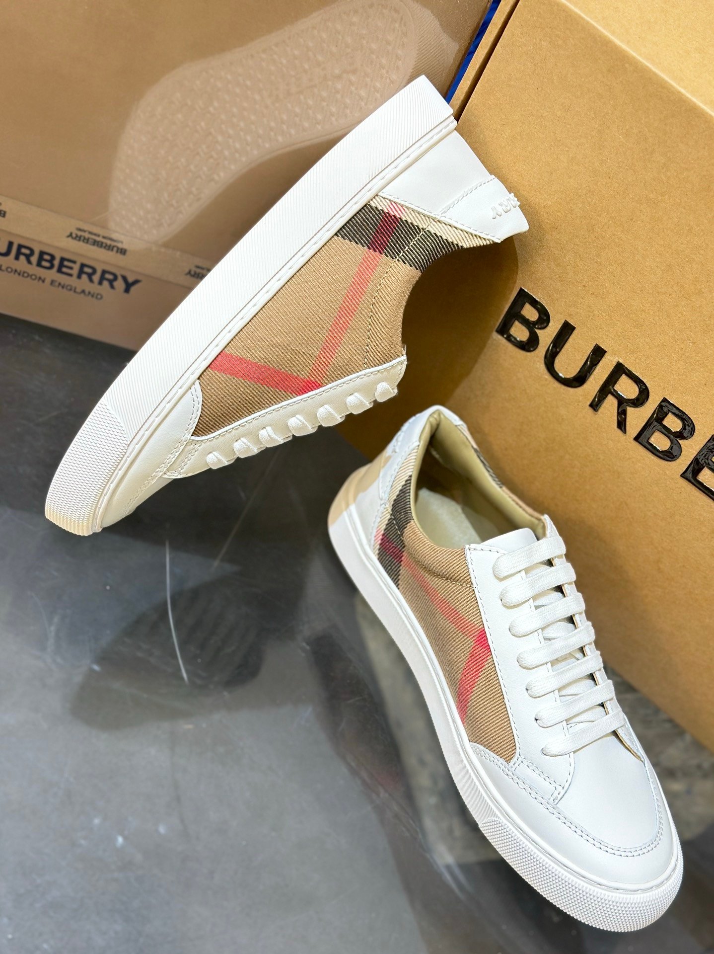 Burberry White Housecheck Canvas Sneakers