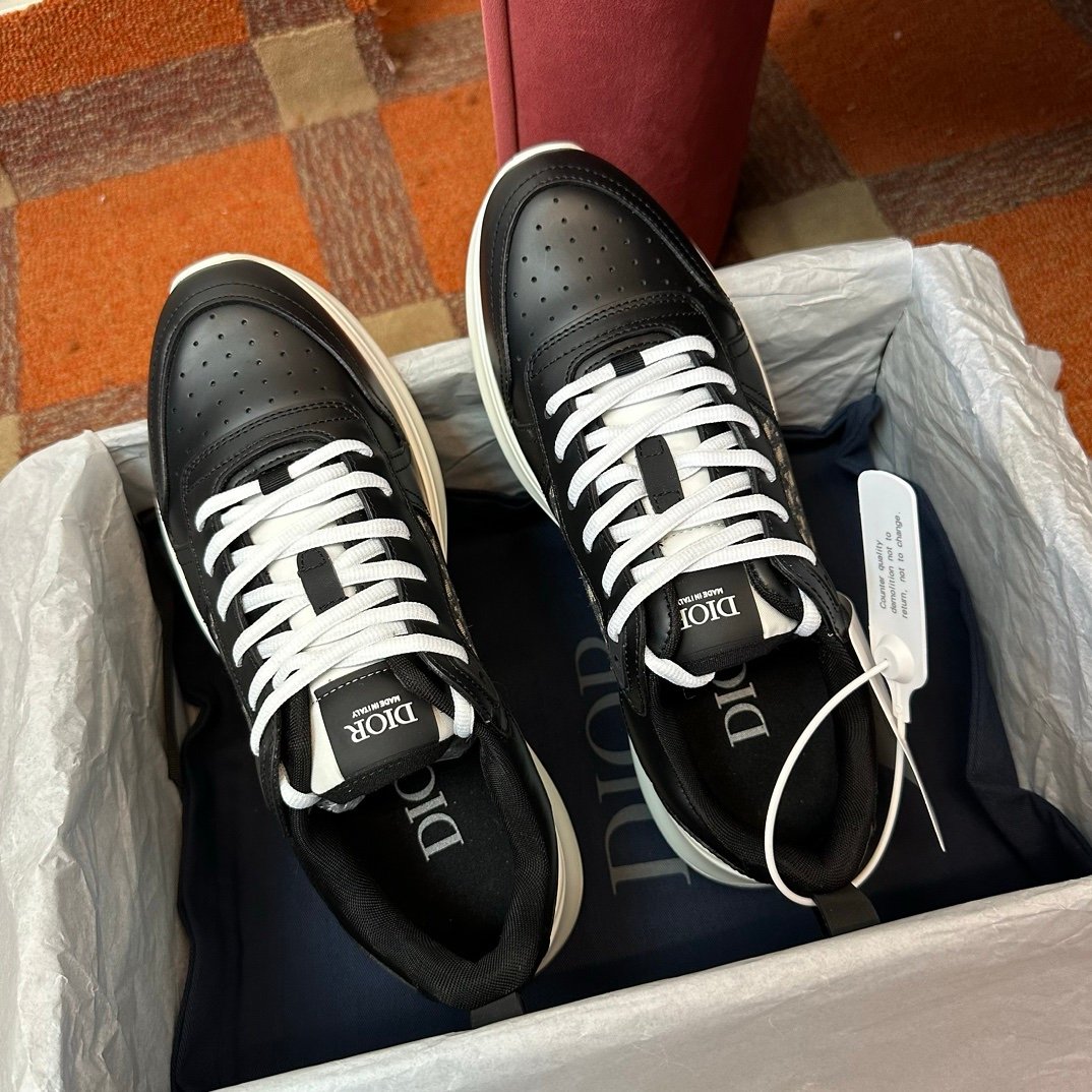 Dior B25 Oblique Black Leather White
