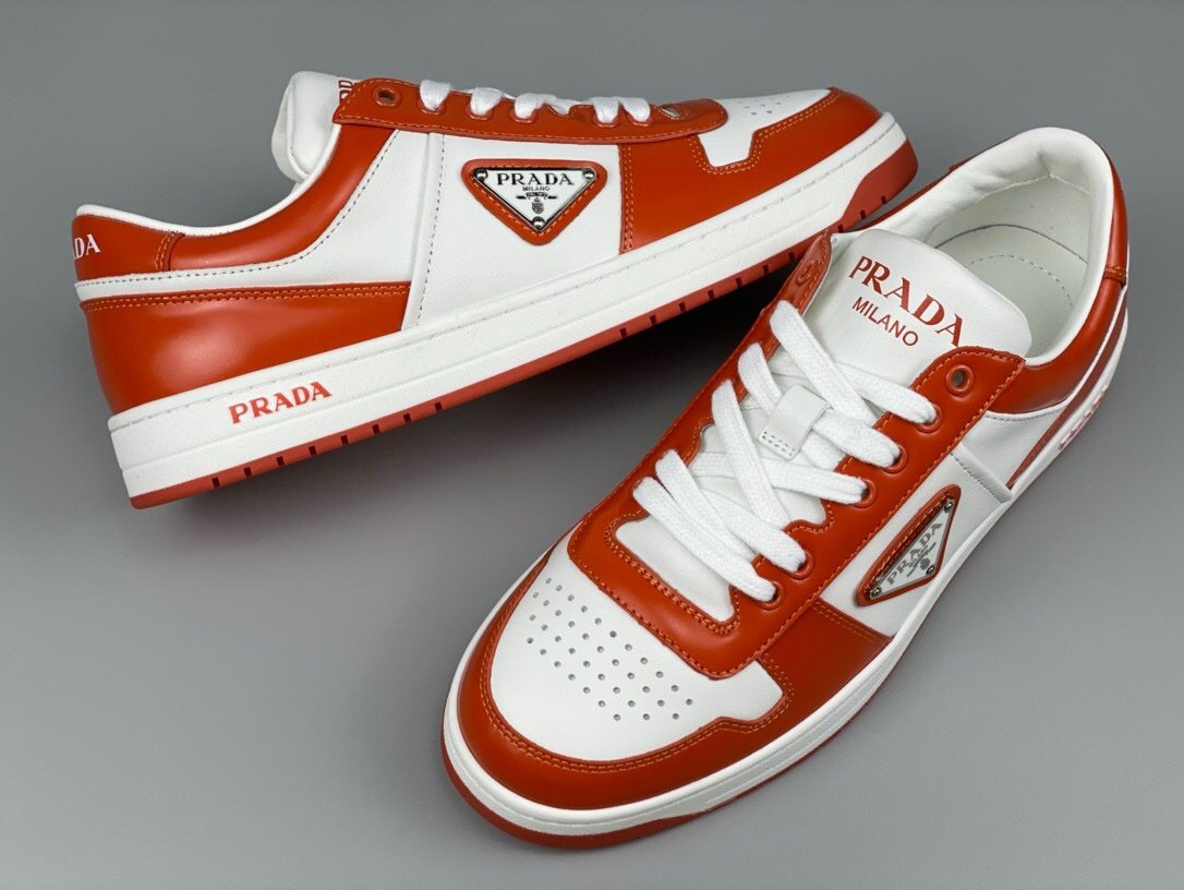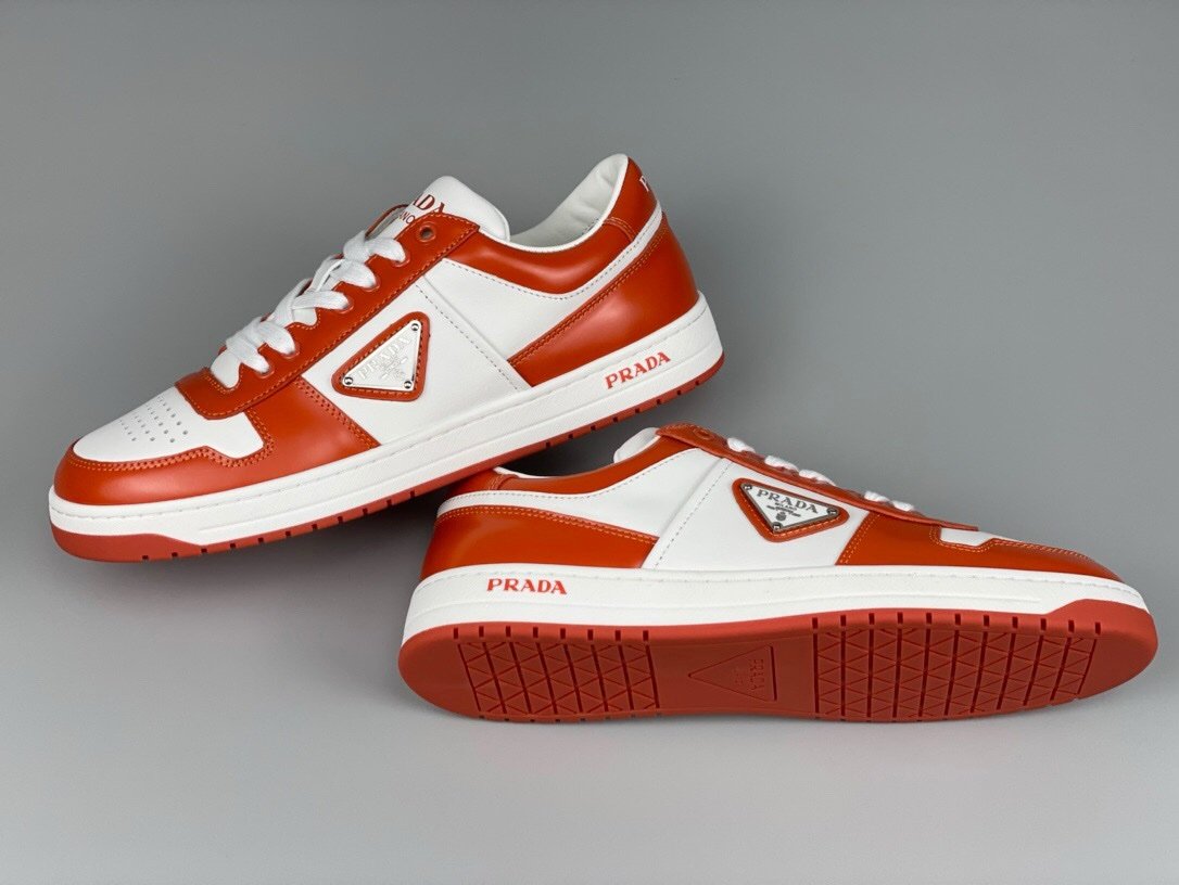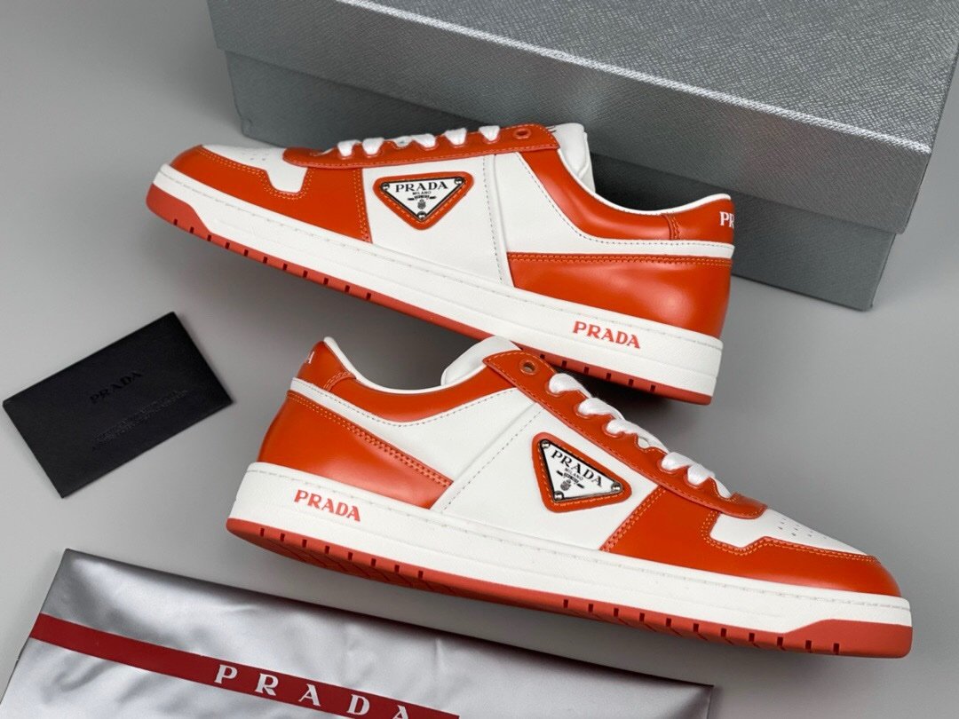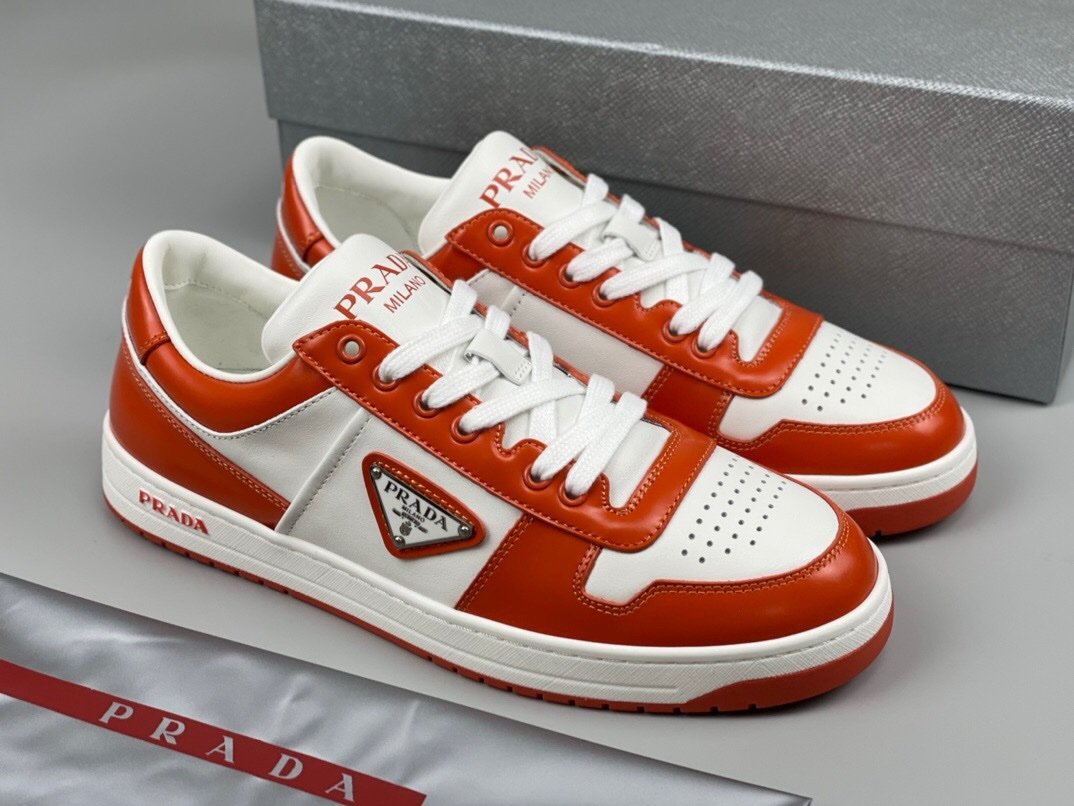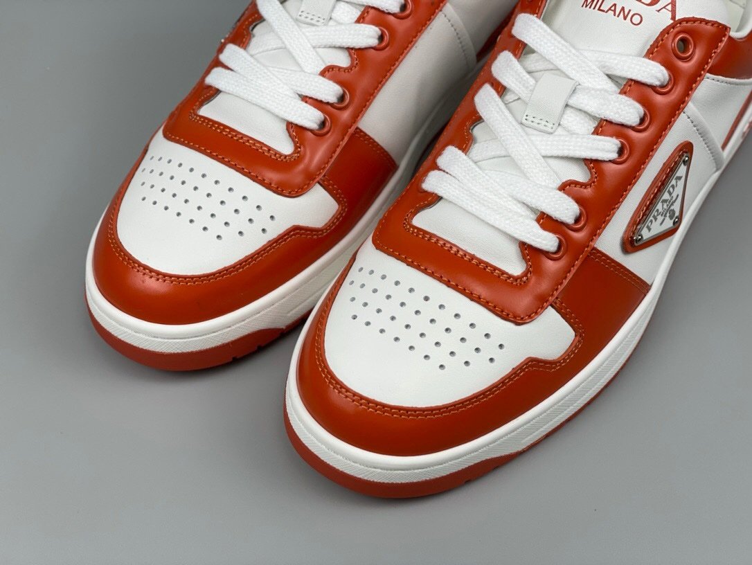 Prada Downtown Leather White Orange Re-Nylon