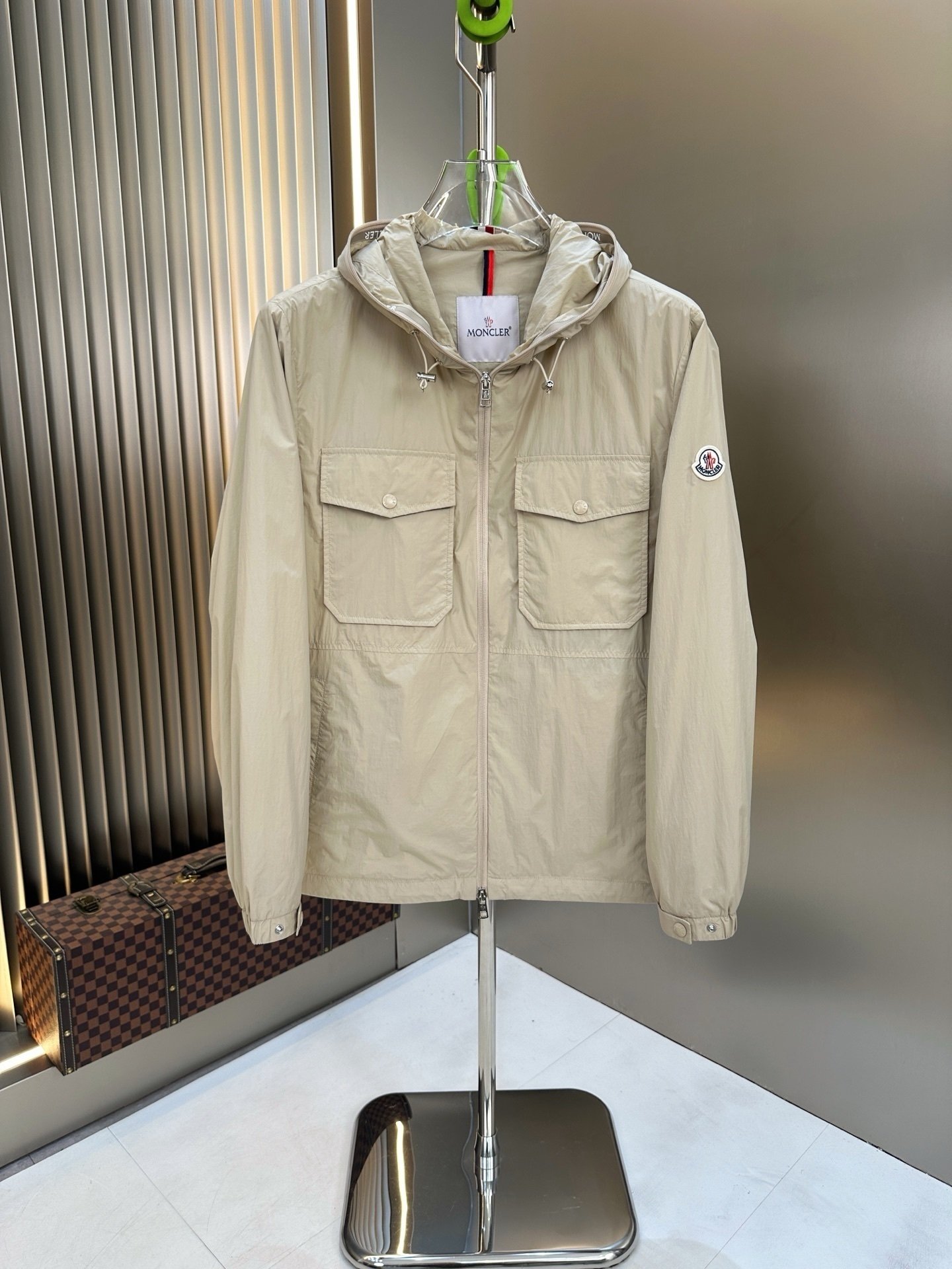 Moncler Plessur Crinkle Nylon Jacket In Beige