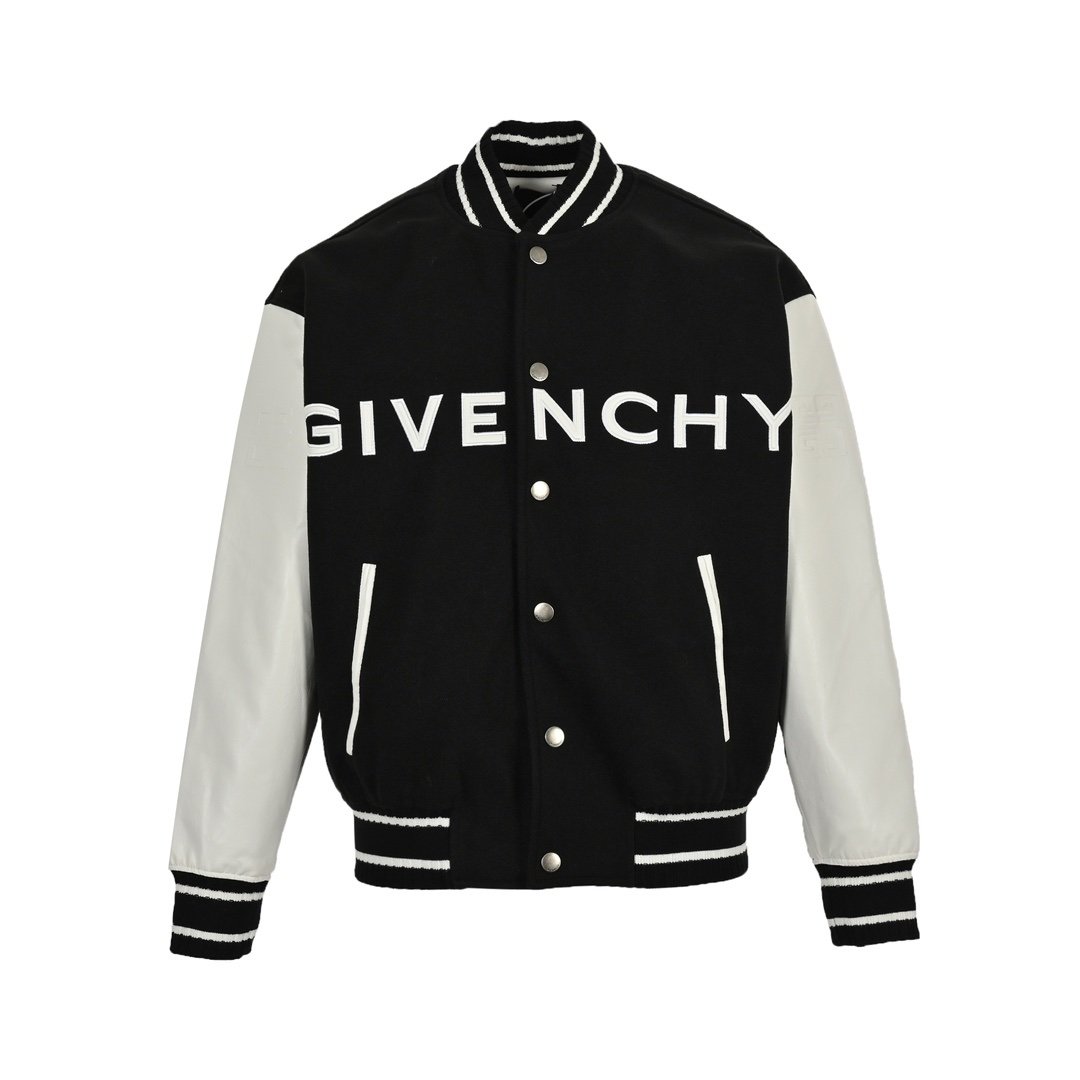 Givenchy Logo Jacket Varsity Jack In White Black Leather