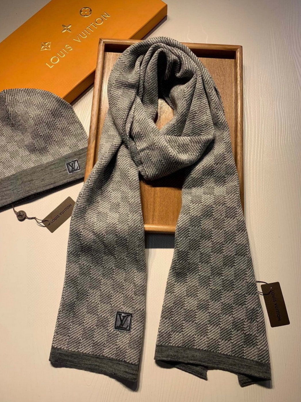 Louis Vuitton Damier Sjaal & Muts Grey