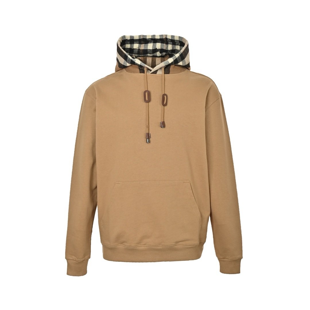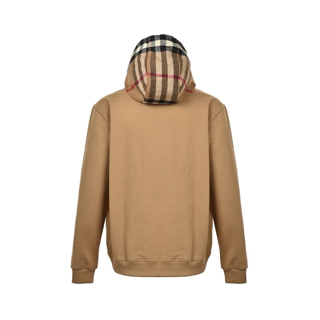 Burberry Check Cotton Blend Hoodie Beige