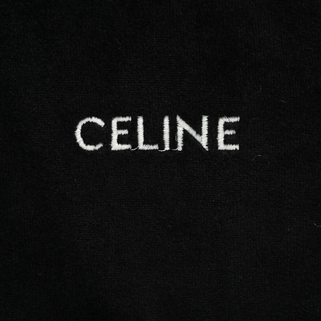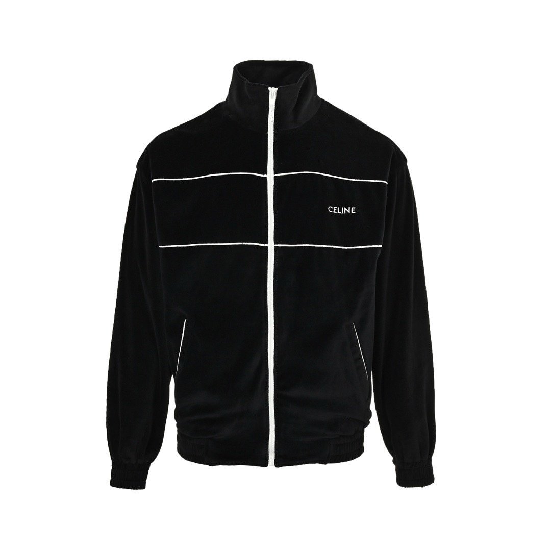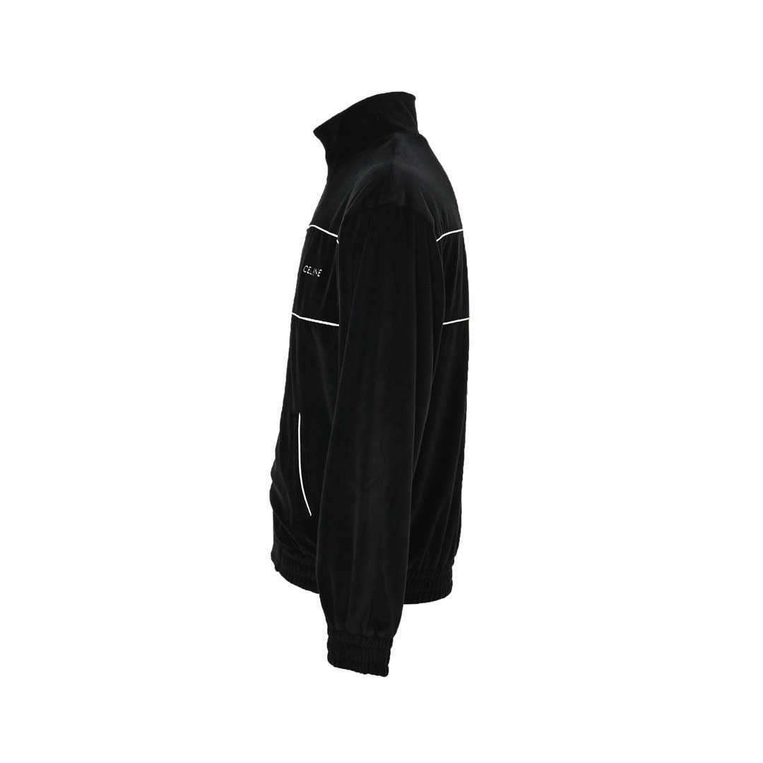 Celine Black Logo Embroidered Corduroy Cotton Zipped Bomber Jacket