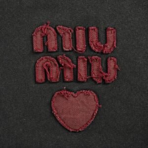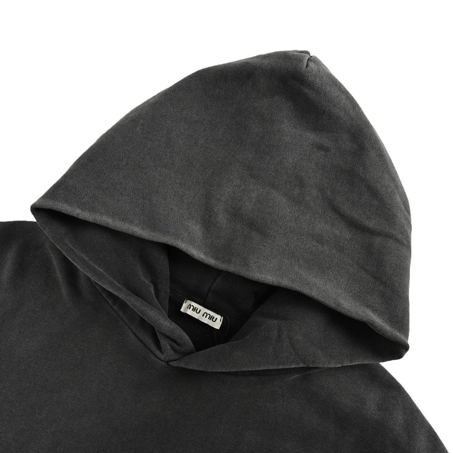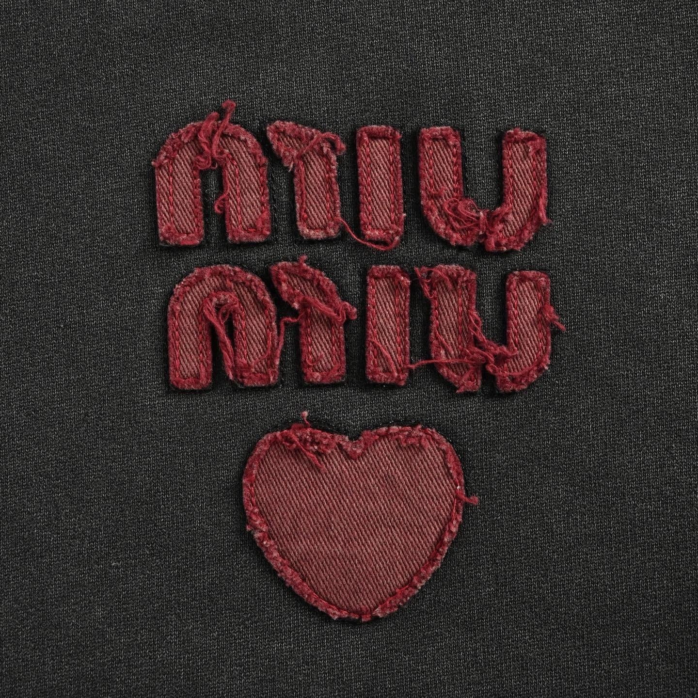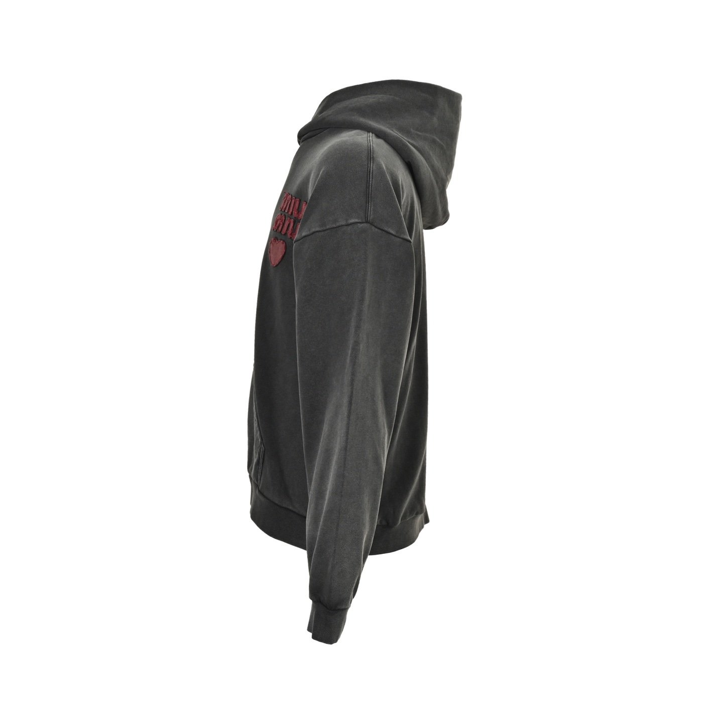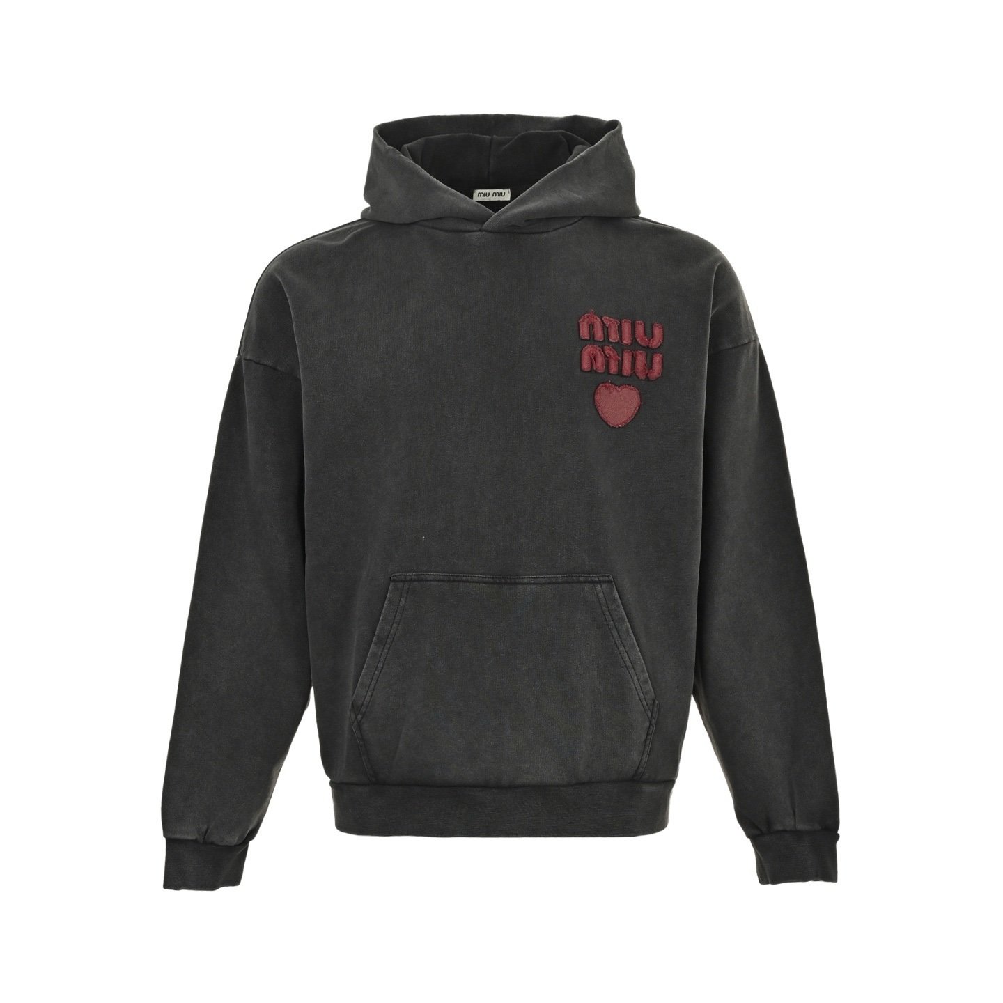 Miu Miu Red Heart Logo Hoodie In Dark Grey