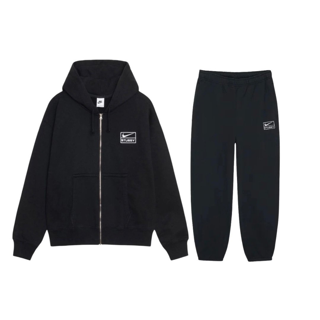 Stussy x Nike Zip Up Fleece Tracksuit Black
